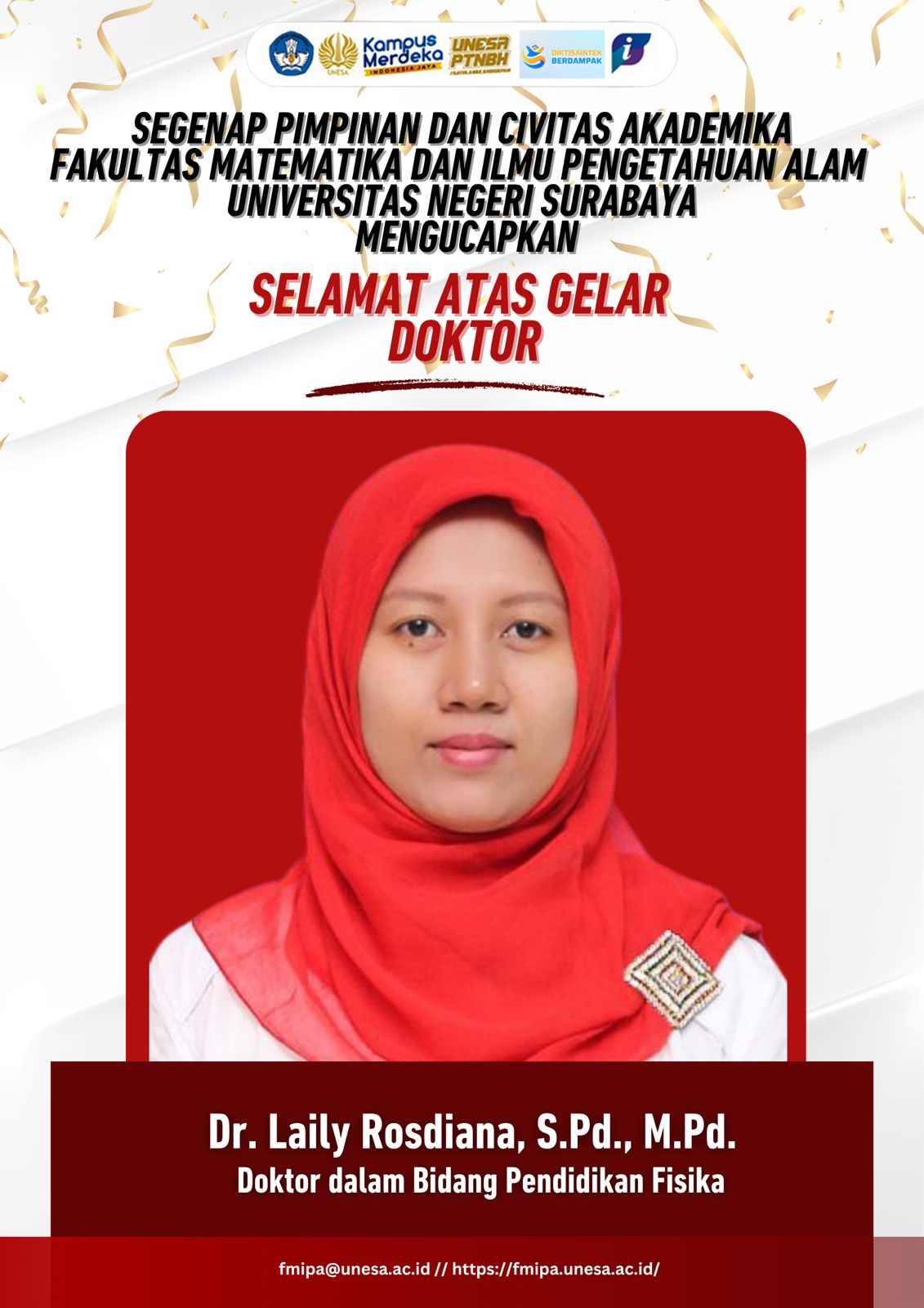 Pimpinan dan Civitas Akademika Fakultas Matematika dan Ilmu Pengetahuan Alam Universitas Negeri Surabaya, mengucapkan: