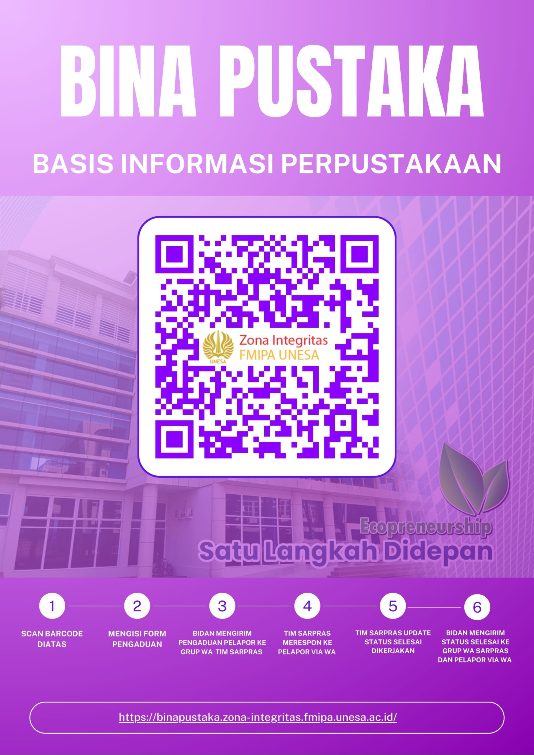 Sosialisasi Aplikasi BINAPUSTAKA – Basis Informasi Manajemen Perpustakaan, menampilkan OPAC, koleksi buku perprodi, keanggotaan perprodi, sirkulasi dan pengunjung perprodi.