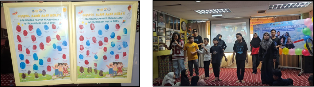 Sebagai penutup dari seluruh rangkaian kegiatan, kami menggelar acara puncak bertema “Jempol Ajaib Anak Hebat.” Dalam kegiatan sederhana namun penuh makna ini, kami bersama anak-anak membuat karya sidik jari berwarna sebagai simbol semangat, keberanian, dan keunikan setiap individu. Setiap jempol kecil yang menempel di kertas itu seolah menyimpan cerita tentang mimpi, perjuangan, dan harapan mereka untuk terus belajar meski di tengah keterbatasan.