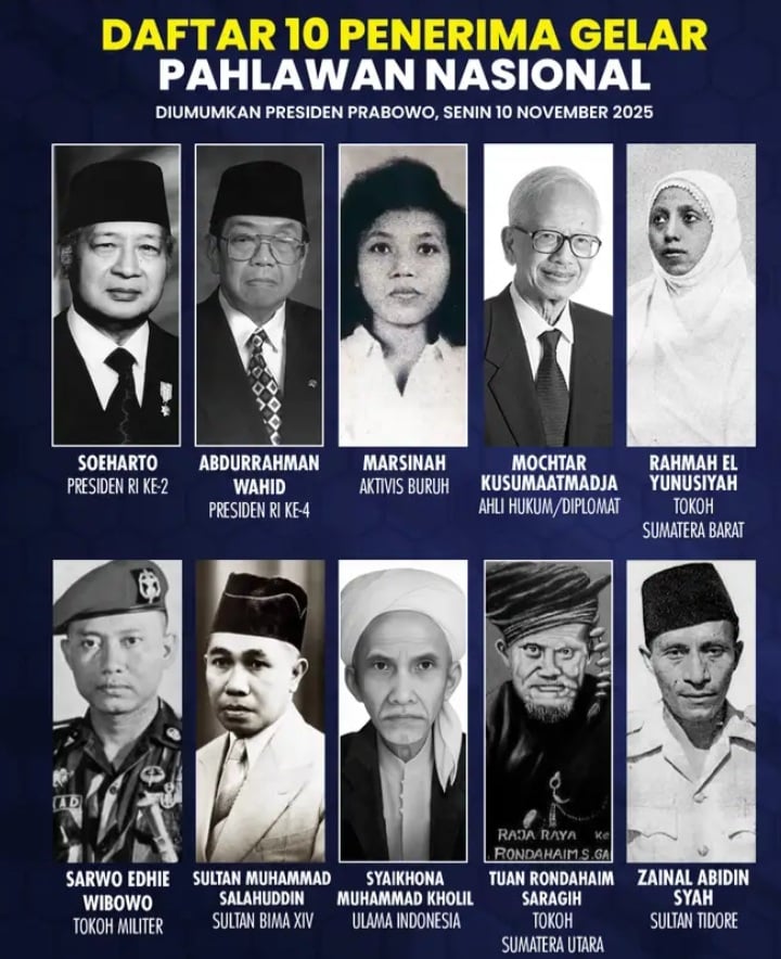 Daftar 10 Tokoh Penerima Gelar Pahlawan Nasional 2025