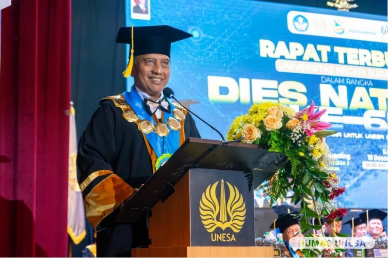 Hal itu ditekankan Rektor, Nurhasan atau Cak Hasan dalam puncak peringatan Dies Natalis ke-61 Unesa dengan tema “Bergerak Bersama untuk Unesa Berdampak” di Graha Sawunggaling, Kampus II Lidah Wetan, Surabaya pada Kamis, 18 Desember 2025.