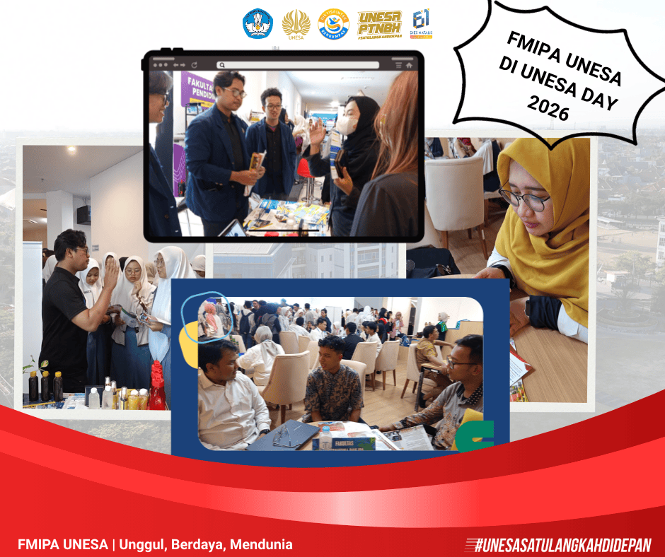 Views: 19Surabaya – Sivitas akademika Fakultas Matematika dan Ilmu Pengetahuan Alam (FMIPA) Universitas Negeri Surabaya ikut berpartisipasi dalam UNESA DAY 2026, kegiatan promosi terpadu yang berlangsung pada 2 Februari 2026 di Kampus II Lidah Wetan, Surabaya. Event ini menjadi salah satu momen penting Universitas Negeri Surabaya untuk memperkenalkan ekosistem kampus Read More …